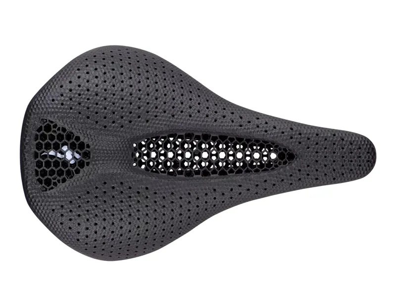 The Power Pro with Mirror starts with our Power shape—beloved by riders worldwide for its extra-wide and elongated Body Geometry channel—and is topped with the exact same Mirror pad as our S-Works Power with Mirror, a patent-pending matrix of 14,000 struts and 7,799 nodes, each of which can be tuned individually to deliver unprecedented sit bone comfort and soft tissue protection. But our Pro-level saddle features titanium rails and a reclaimed carbon fiber base to bring Mirror technology to more riders on more terrain than ever before.